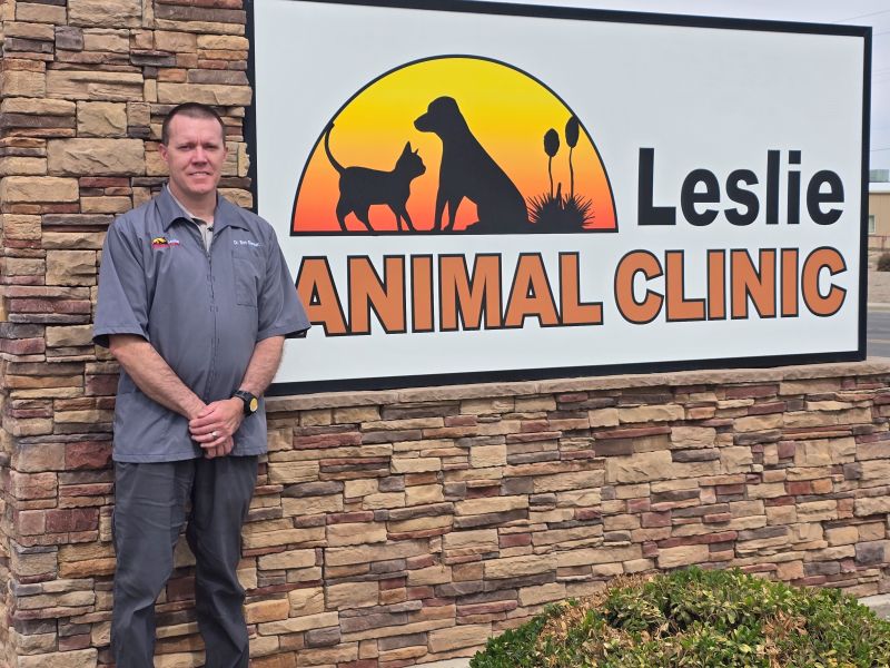Darryl B. Leslie was born and raised in Alamogordo, New Mexico. He attended New Mexico State University for his undergraduate studies and then attended Colorado State University and received his doctorate in veterinary medicine in 1991. This added a third veterinarian to the family, as his father and his oldest brother, Earl, are also veterinarians. Dr. Leslie joined his father’s practice in June 1991and purchased the practice from him in 1994. The practice, Leslie Animal Clinic, was set up By Dr. Earl Leslie in 1959 and it was a proud day for the family as it passed from one generation to the next.